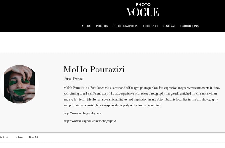 PhotoVogue is both an archive and a platform for artists to showcase their work worldwide after receiving the approval of the editorial Staff.