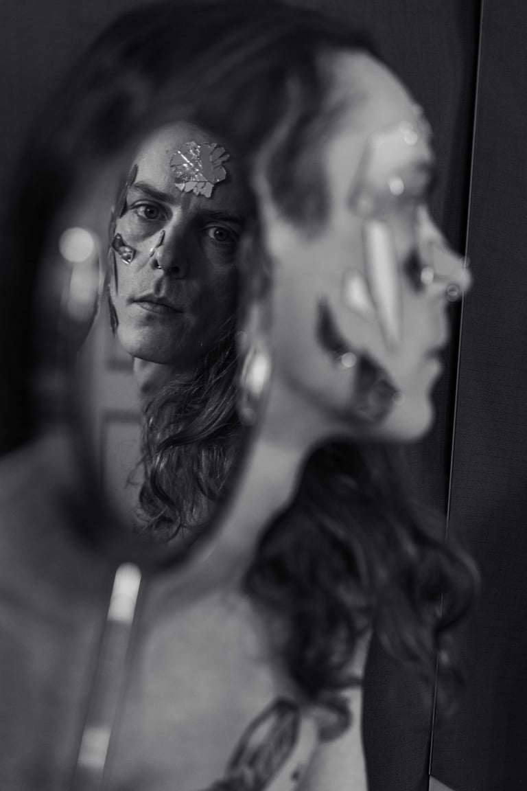 The spectrum of colours escapes from the image, Like the dark paint that separates from the painting.